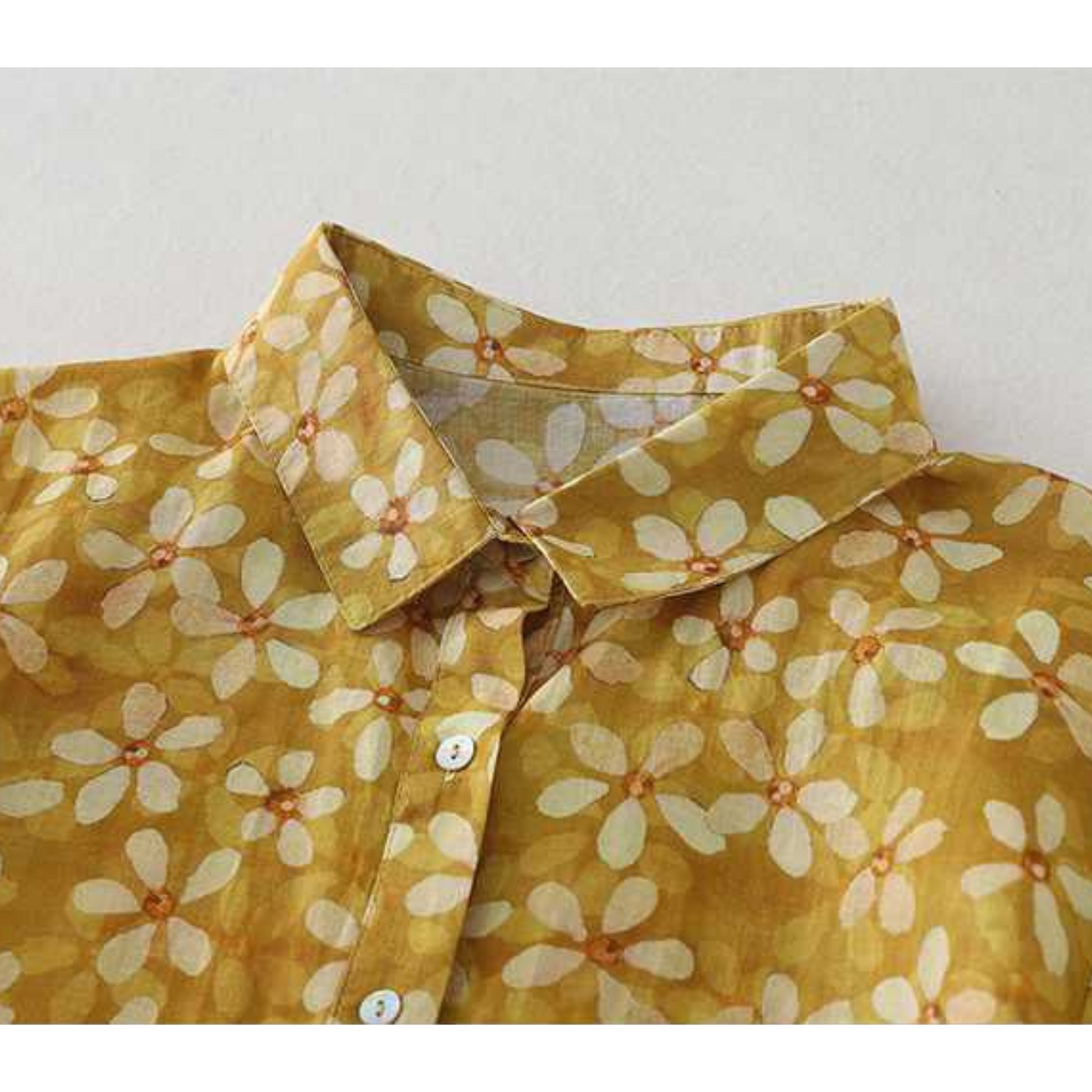 Golden Bloom Pure Cotton Shirt – Vintage Floral Print, Full Sleeve Casual Elegance